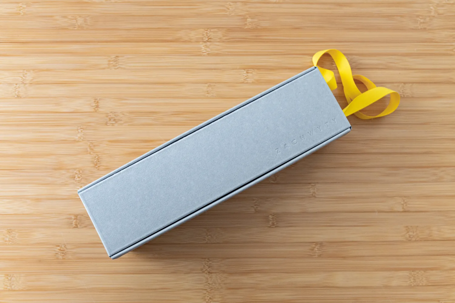 Upominek zapakowaliśmy w pudełko prezentowe wykonane z szarej tektury barwionej w masie, wykonanej z makulatury.
