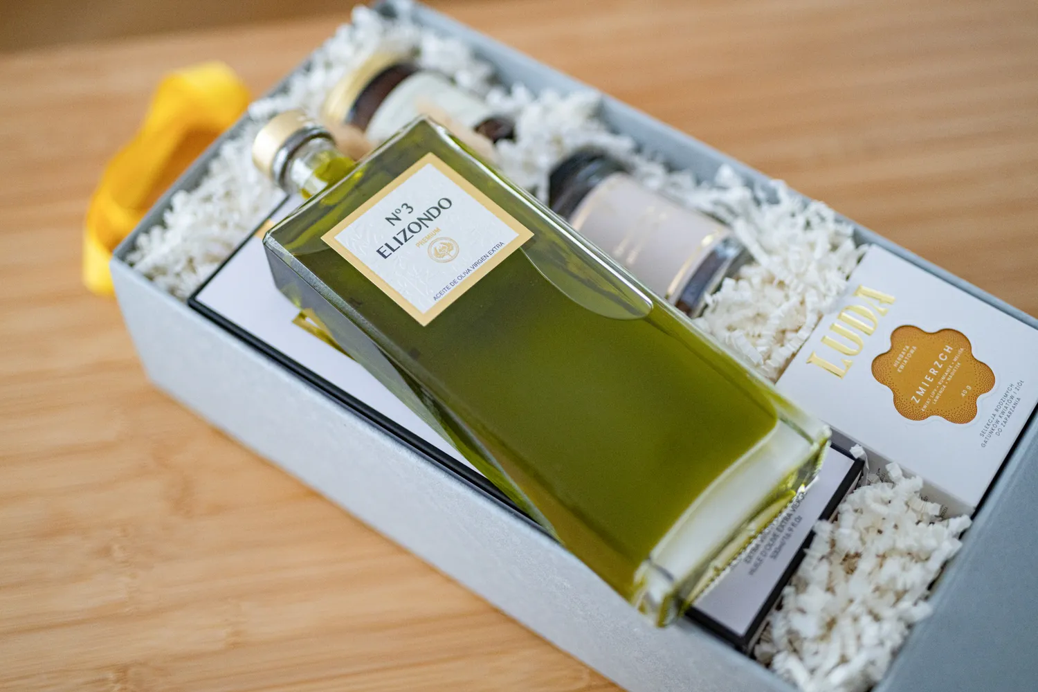- Oliwa Elizondo N⁰3 Premium Picual Extra Virgin 500ml w opakowaniu prezentowym – hiszpańska, wczesna oliwa z oliwek odmiany Picual zbieranych w październiku, tłoczona na zimno w dniu zbioru, pochodzi z regionu Andaluzji, z prowincji Jaén – Sierra de Cazorla.