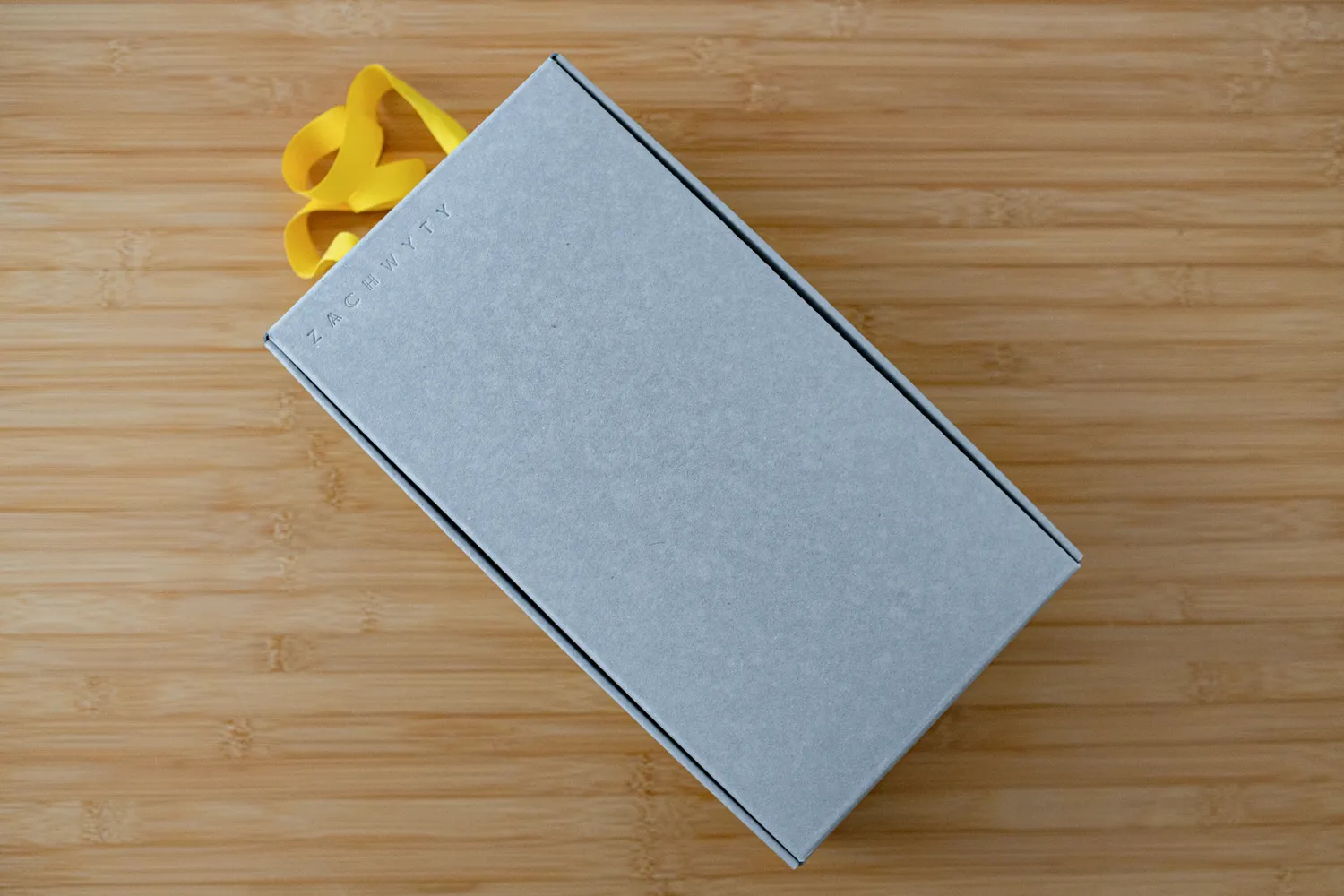 Upominek zapakowaliśmy w pudełko prezentowe wykonane z szarej tektury barwionej w masie, wykonanej z makulatury.