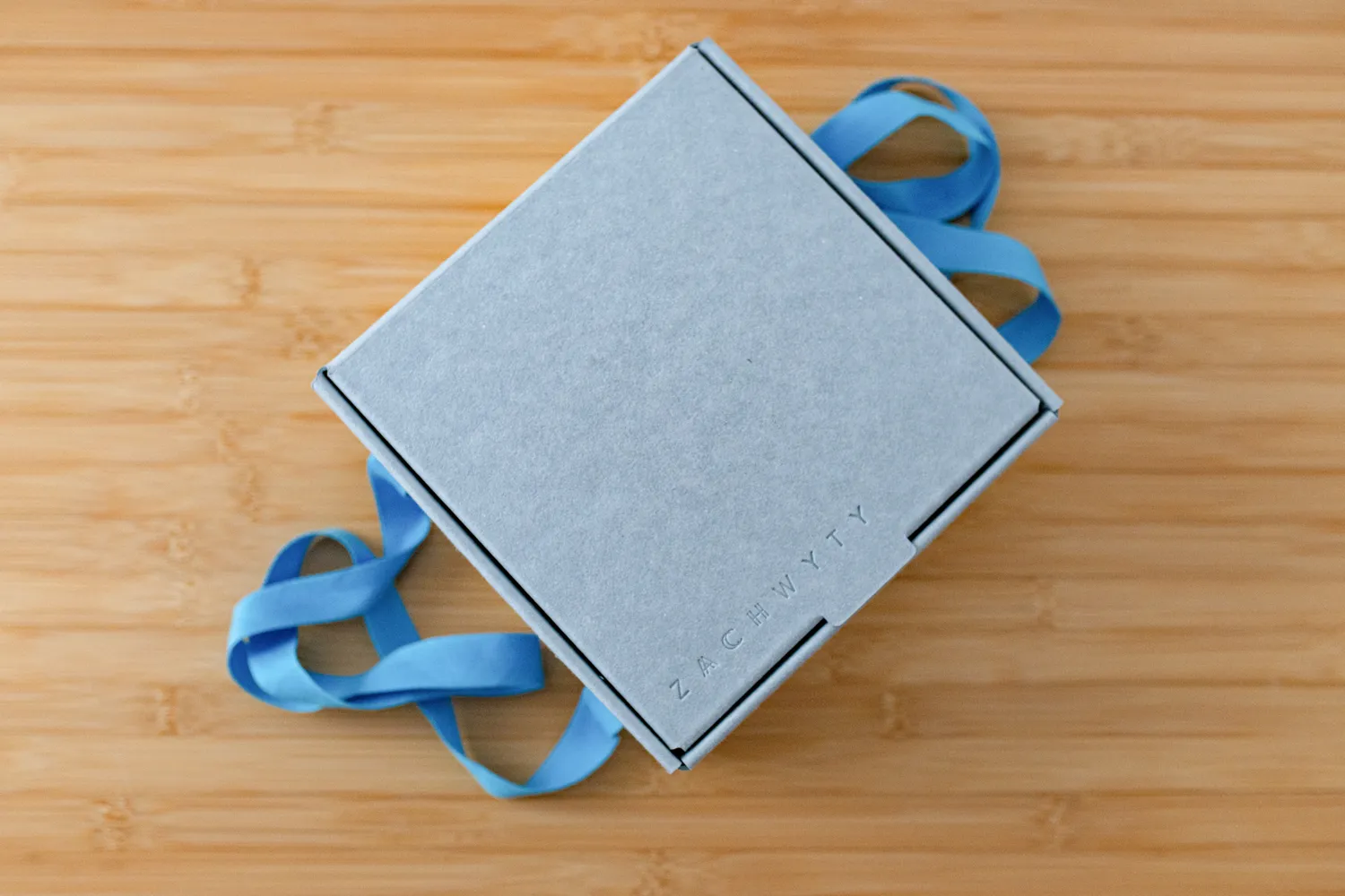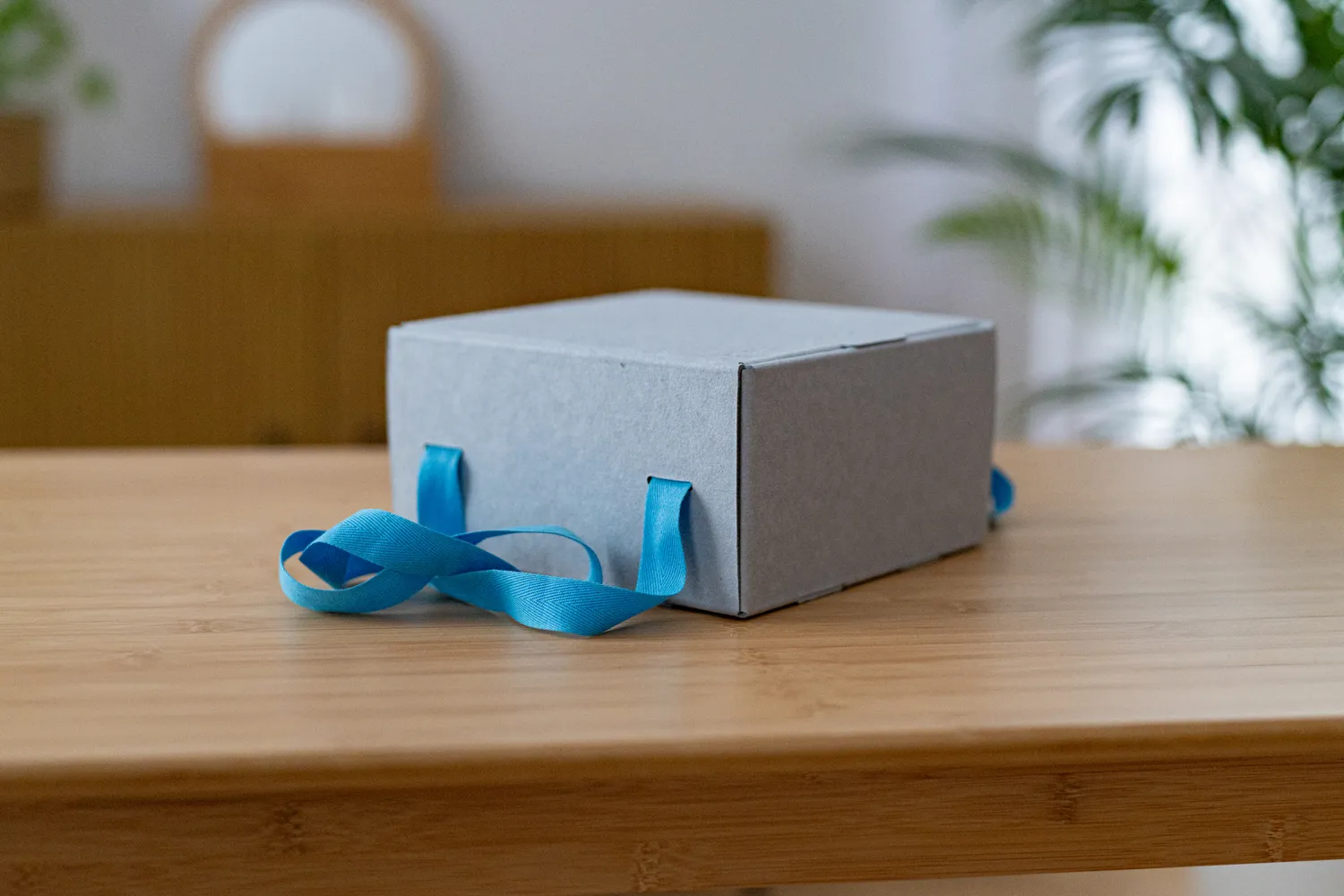 Upominek zapakowaliśmy w pudełko prezentowe wykonane z szarej tektury barwionej w masie, wykonanej z makulatury.